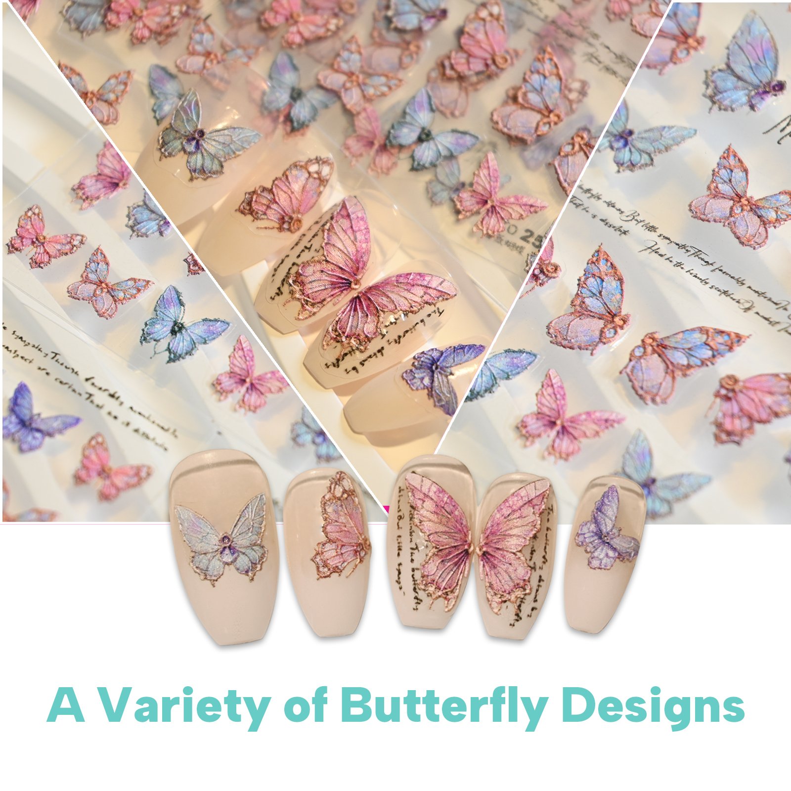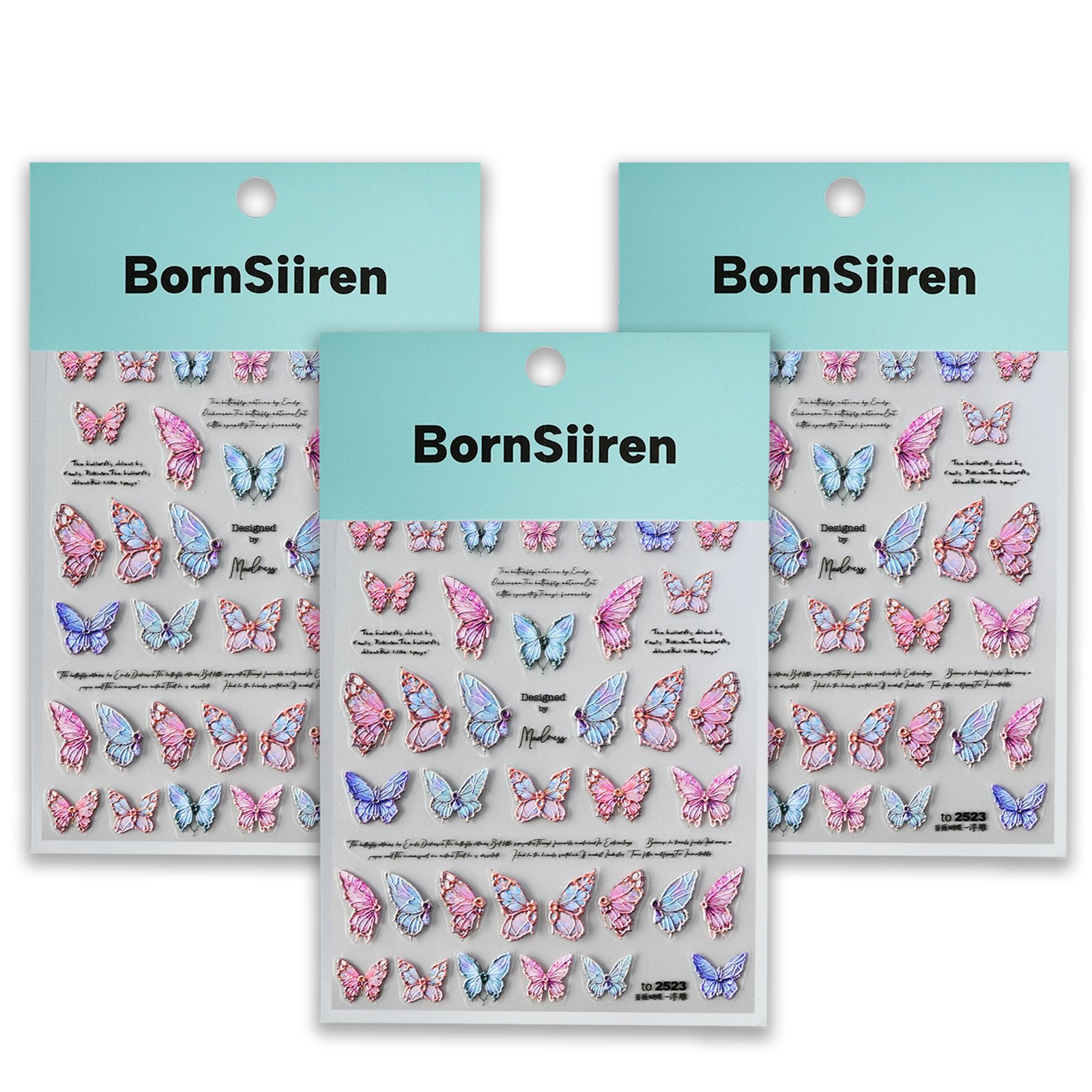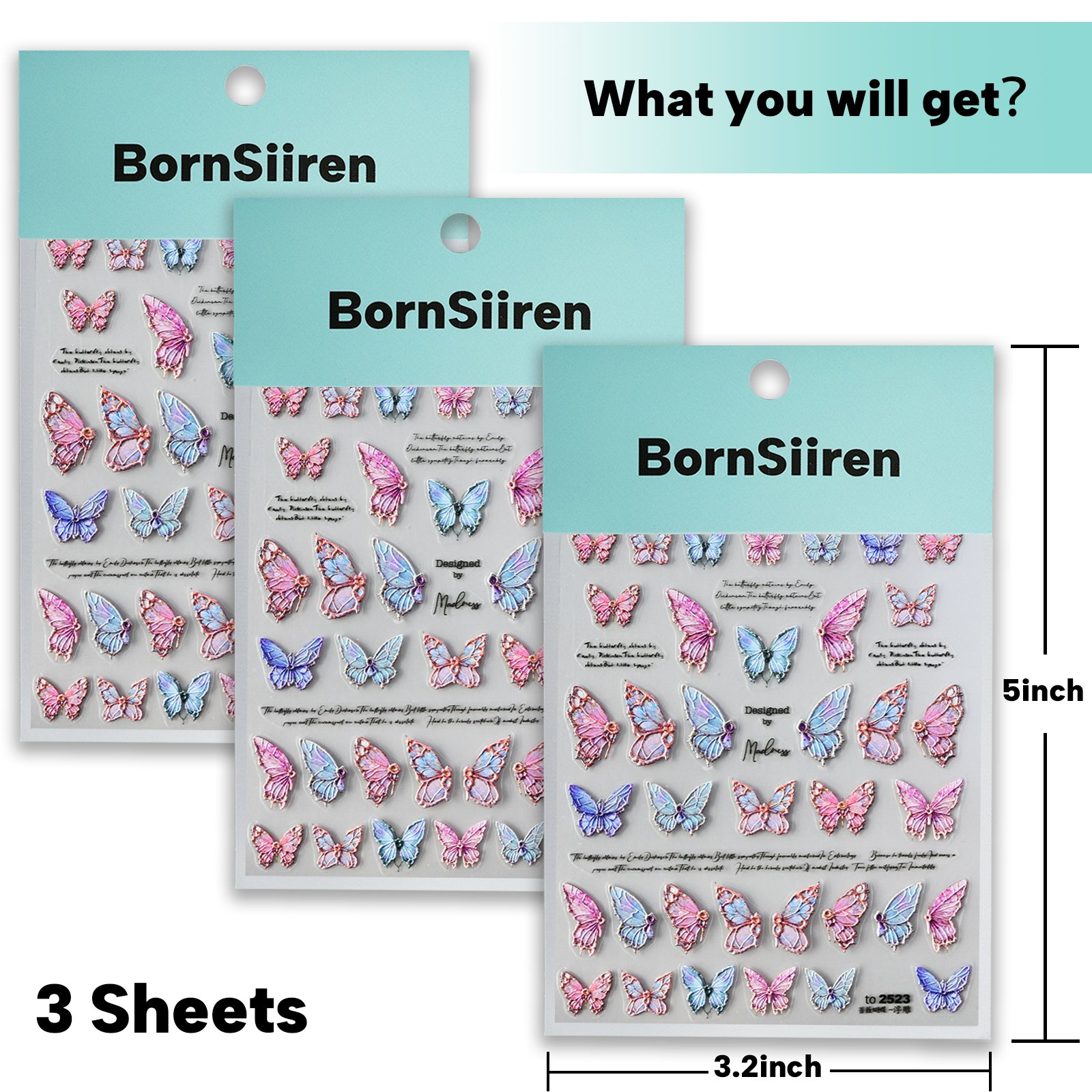 BornSiiren 3 Sheets Butterfly Nail Art Stickers 5D EmbossedBornSiiren 3 Sheets Butterfly Nail Art Stickers 5D Embossed