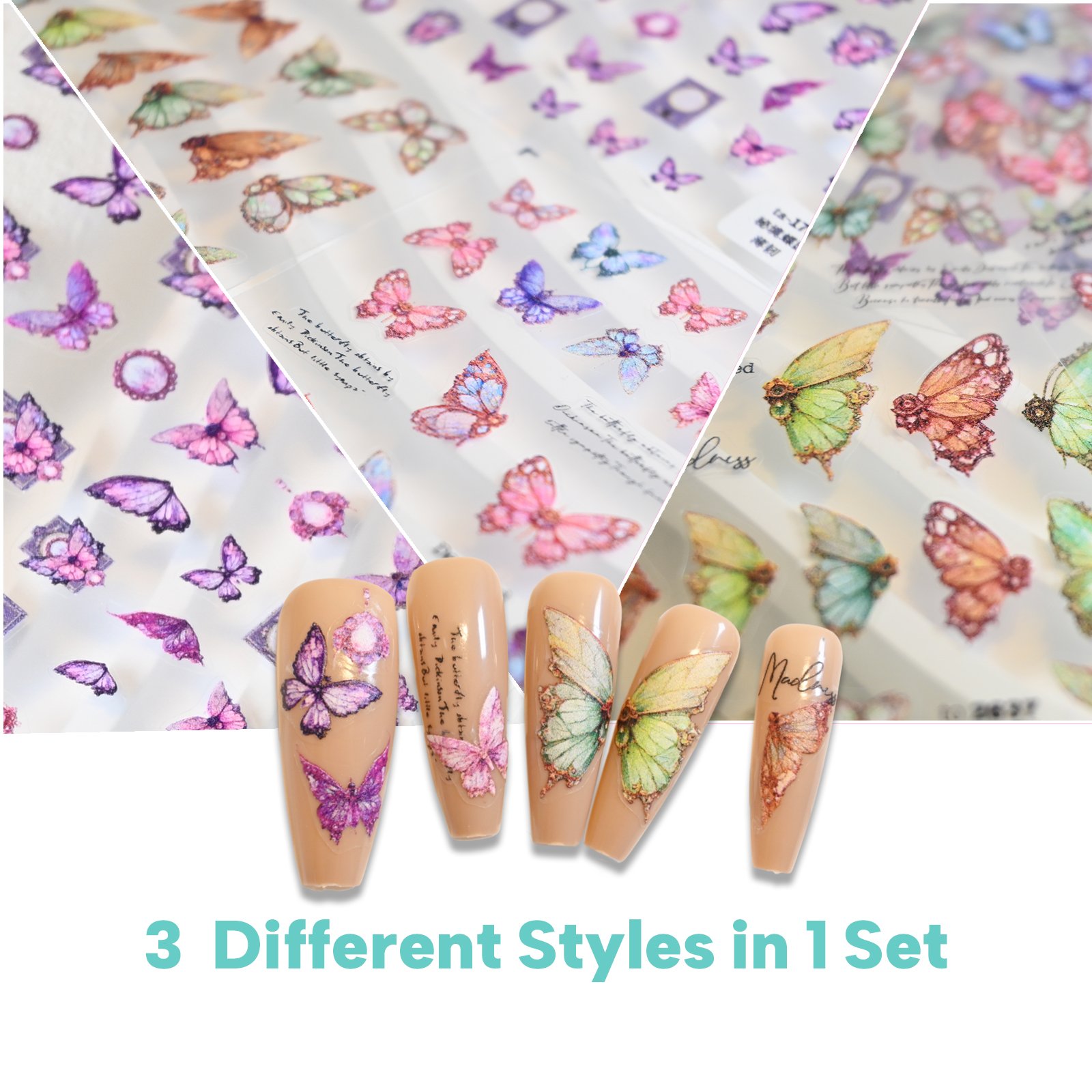 & Free ShippingYou will get 3 sheets of butterfly nail stickers in 3 different styles.Creating your own nail art style never be easier with mix and match this nail stickers set.