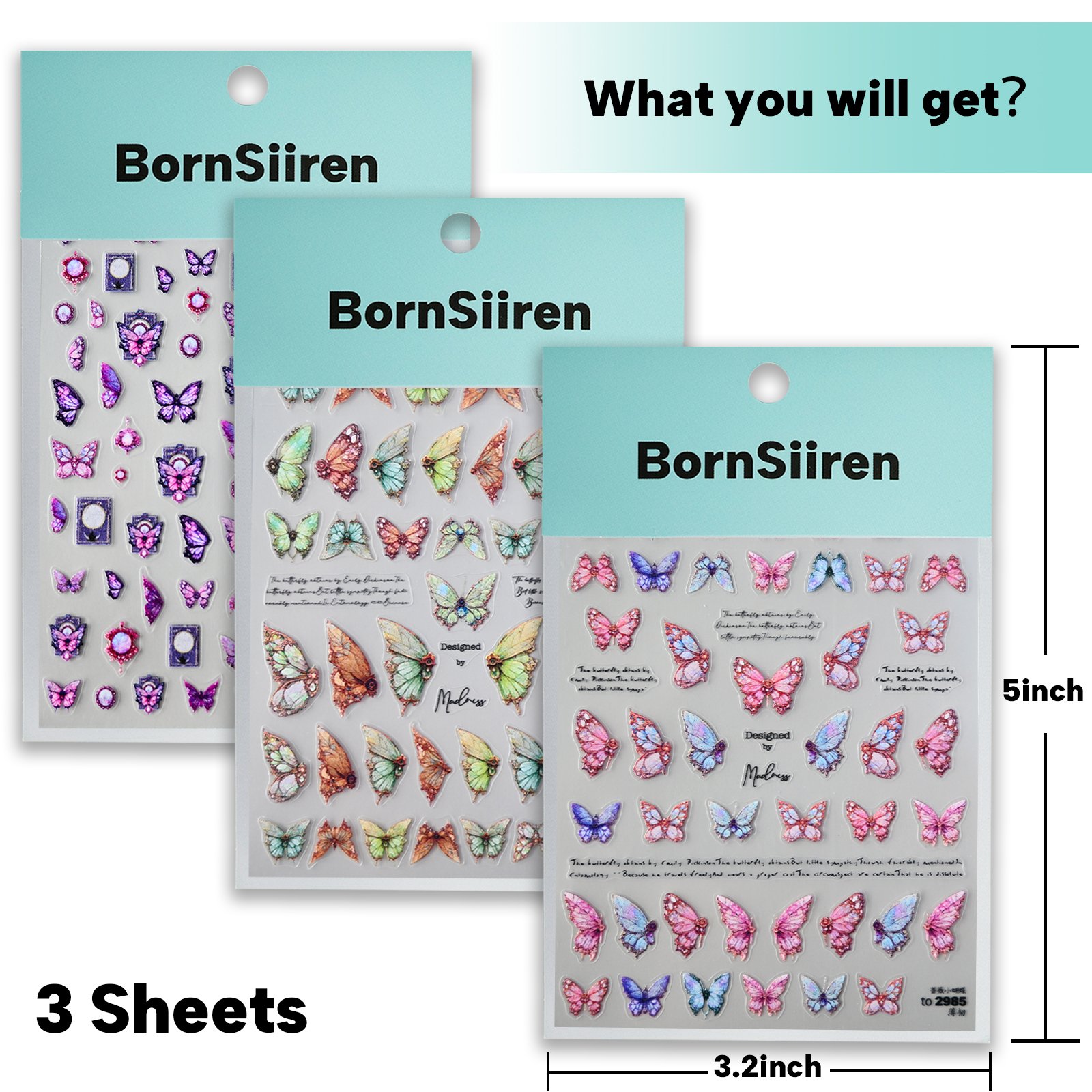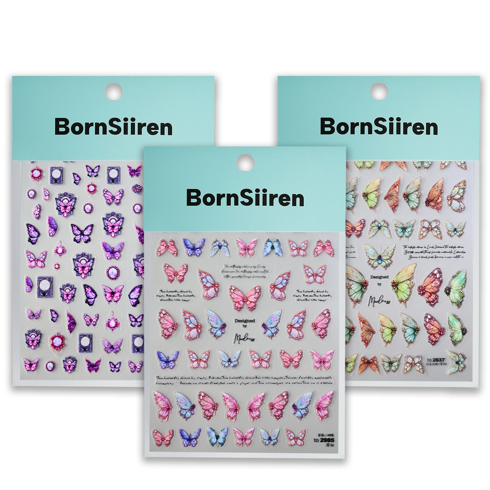 BornSiiren 3 Sheets Butterfly Nail Art Stickers Thin